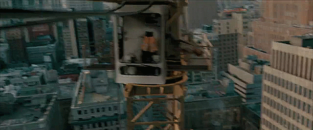 And then, in the middle of it, Iron Man drives the Hulk into a massive building under construction, bringing the entire structure crashing to the earth, and director Joss Whedon inserts a moment that makes you gasp. It is almost the spitting image of this famous photograph, with businessmen racing, panicked, from billowing clouds of dust behind them. The photograph, of course, is from September 11, 2001. The businessmen are racing from the collapse of the World Trade Center.